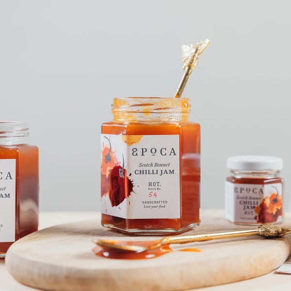 Scotch Bonnet chilli preserves elevating your cheeseboards & dishes.